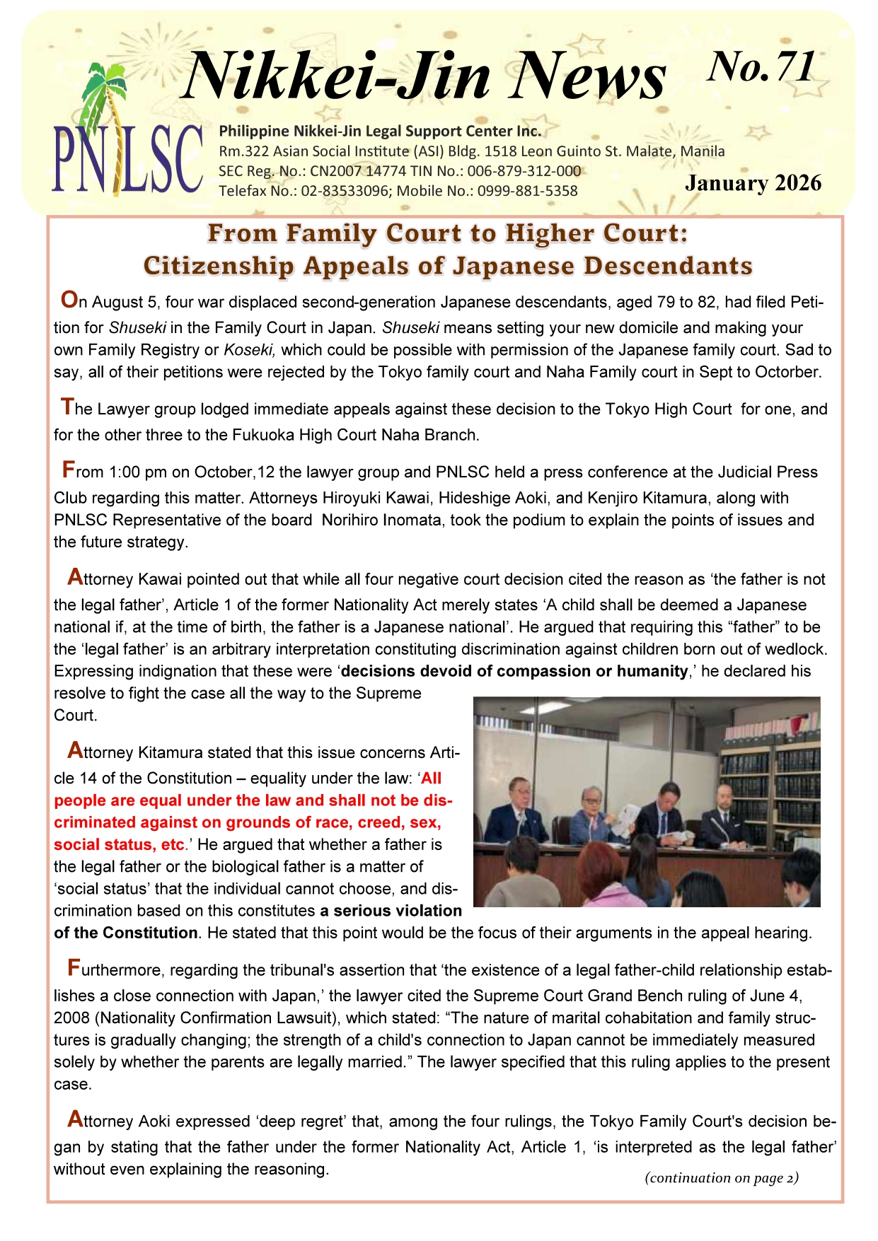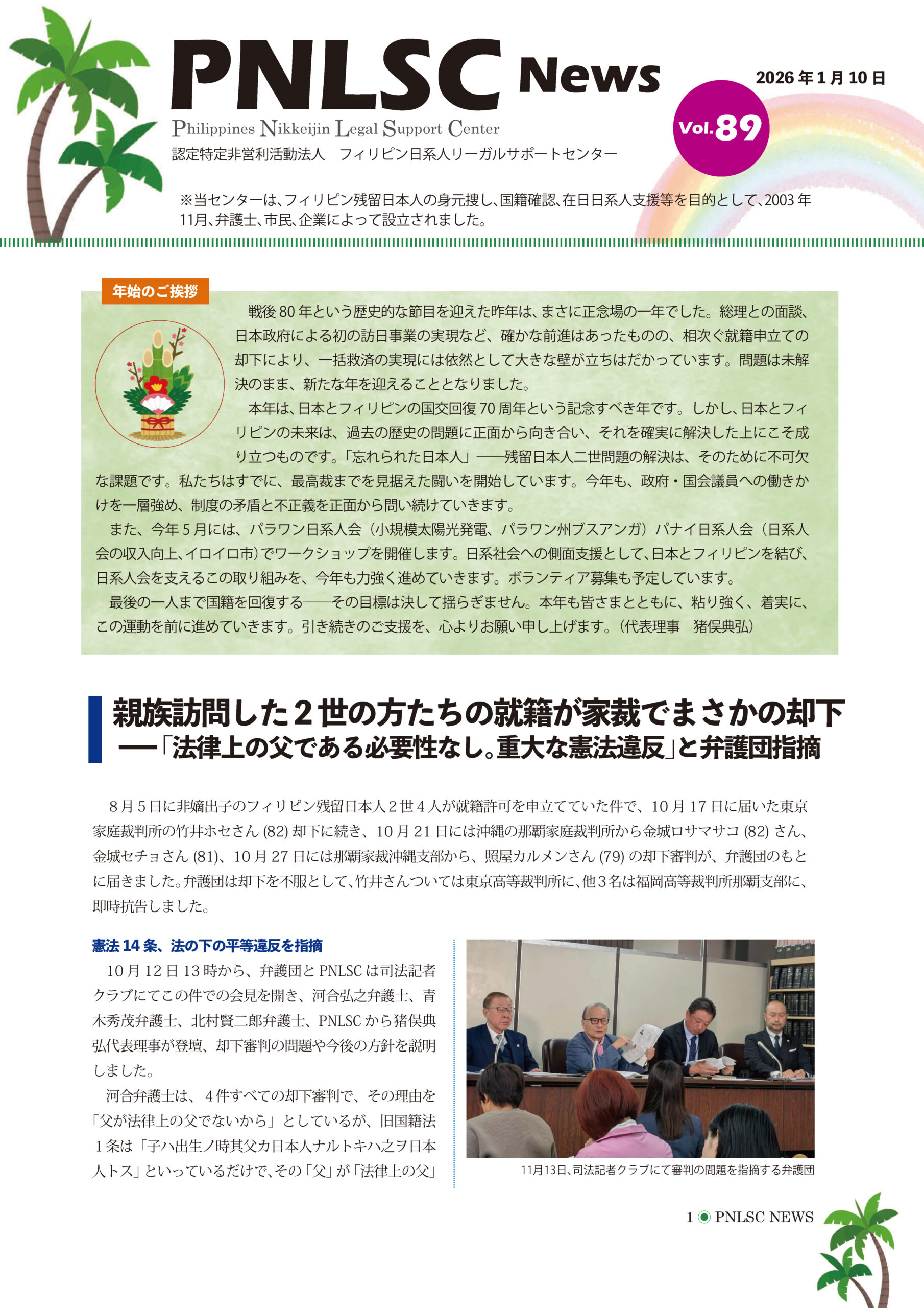 同じく年4回、在日在比の日系人向けに英文のNikkeijin Newsを発行しています。※PNLSCニュースの英語版ではなく、内容は異なります。